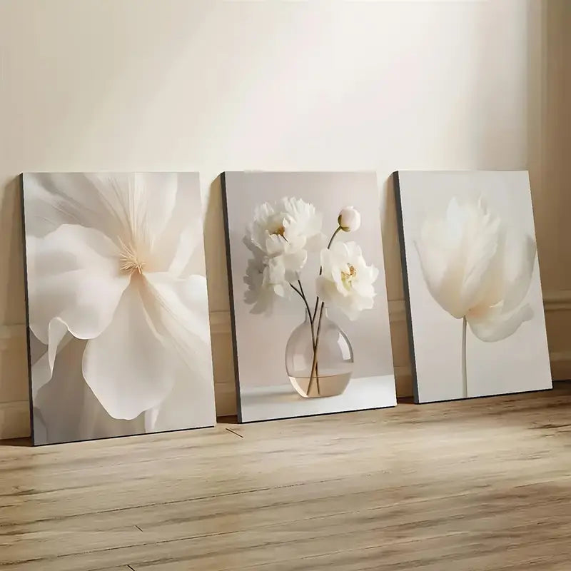 1PC/3PCS Frameless Nordic Beige Peony Flowers Canvas Painting Modern Floral Botanical Posters Aesthetic Wall Art Home Decoration